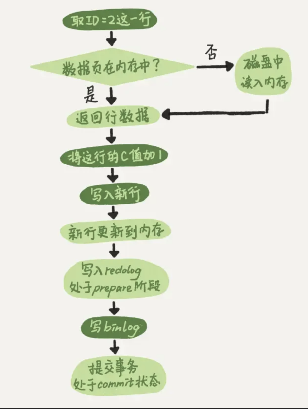 update语句执行流程:mysql> update T set c=c+1 where ID=2;